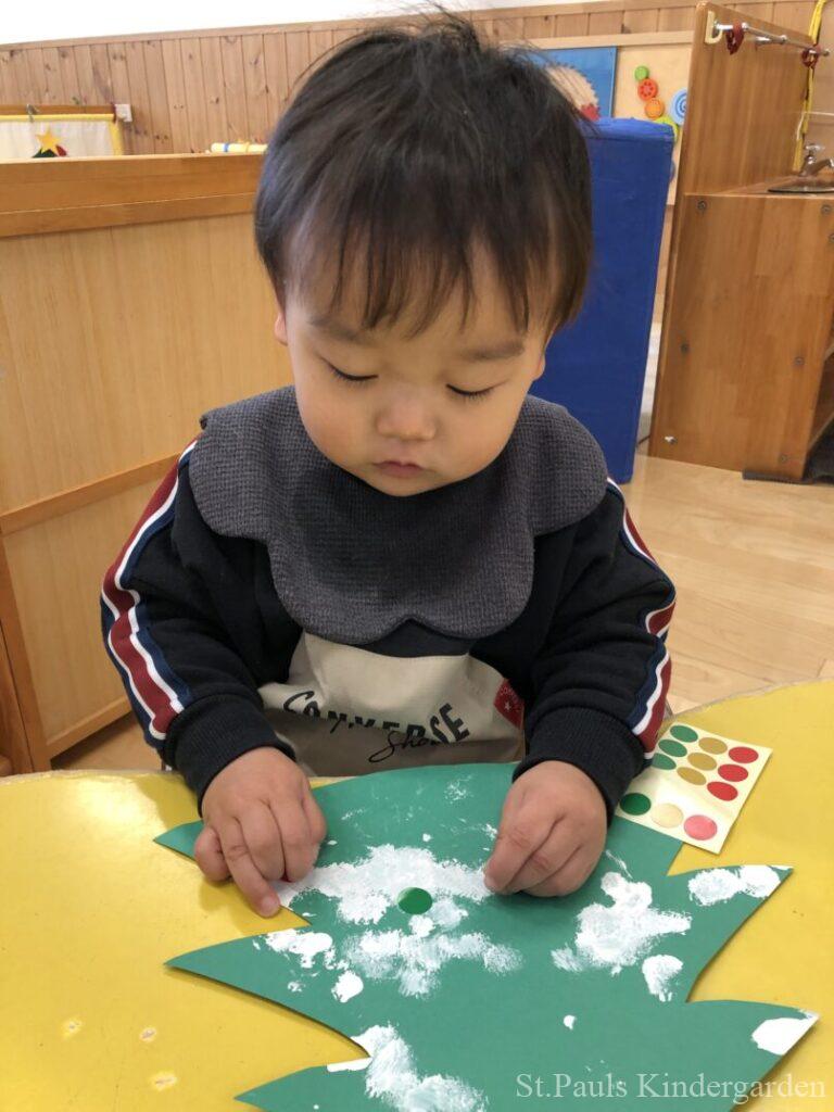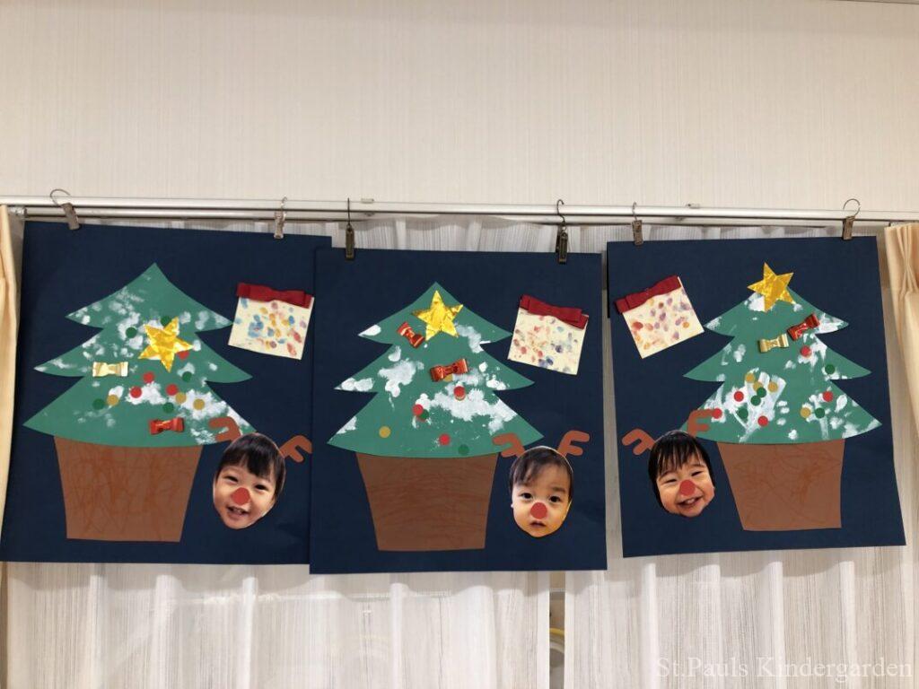 ももぐみだより クラスだより 2025.12.27 なんだかワクワクするぞ お部屋はクリスマス一色です ももぐみさんも クリスマスの製作をしましたよ ツリーの飾りに見立ててシール貼り これは指スタンプ プレゼントの箱になります ツリーの横にはかわいいトナカイさんたち❤️ 子どもたちのお絵描きを切りたくなかったので ちょっと大きめの鉢になっちゃいました(笑) あっという間にもう年末ですね みなさま良いお年をお迎えください
