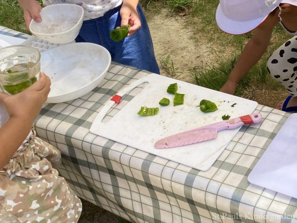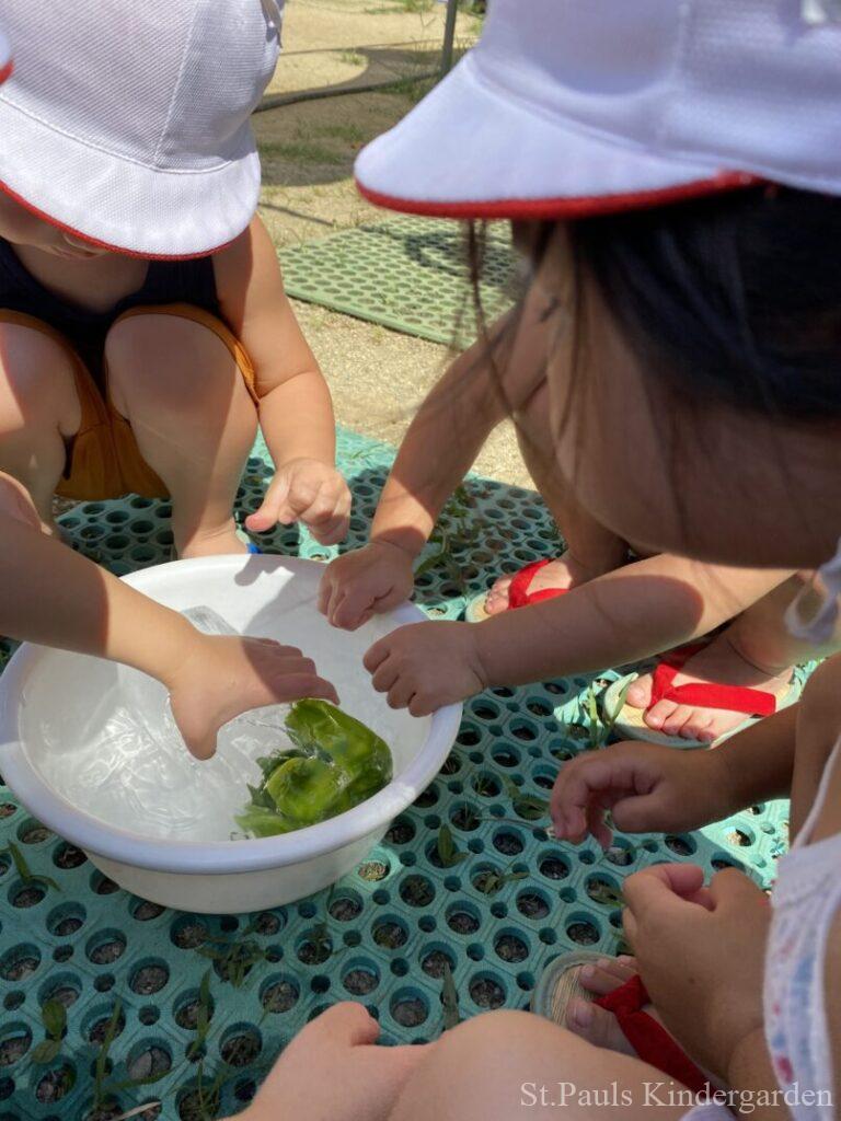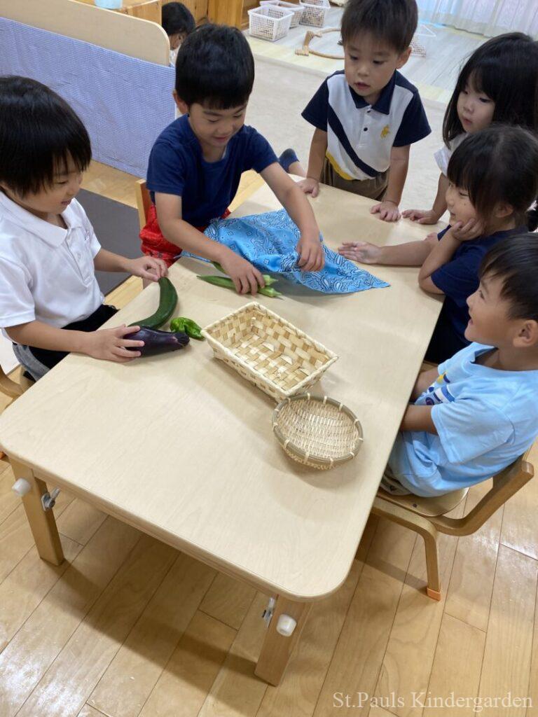パウロには夏野菜がたくさん育っているので畑やプランターをのぞいたり、野菜を使った遊びを楽しみました!