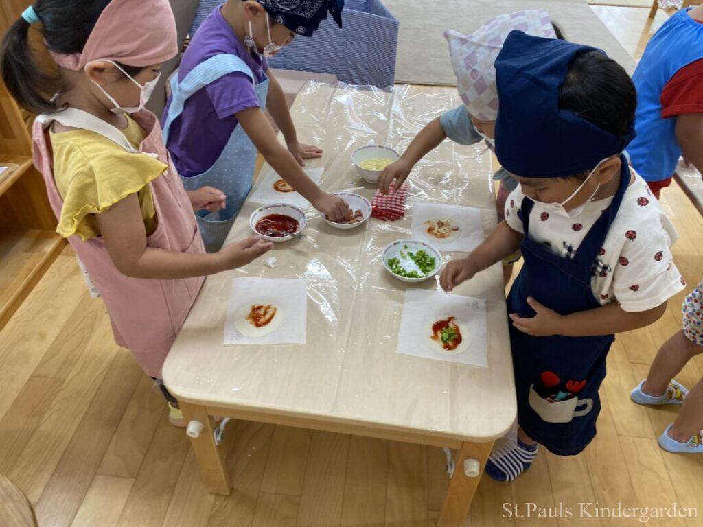 たくさん野菜で遊んできたので最後はみんなで食べよう!ピーマンピザのクッキング🍕🫑