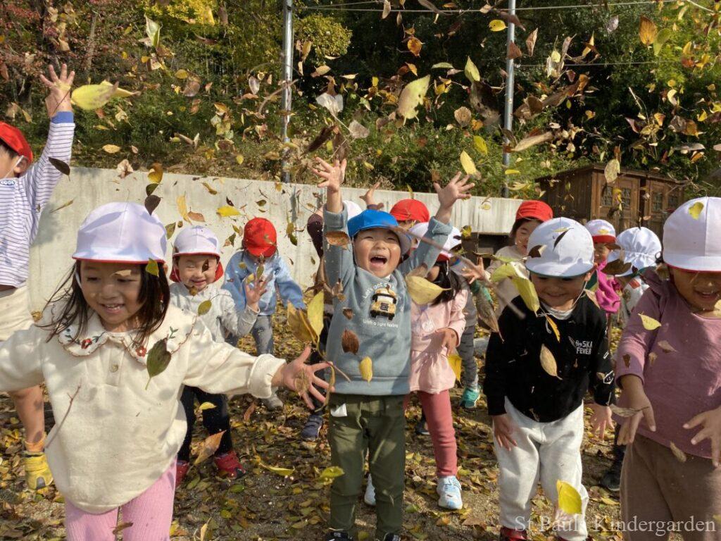 たくさんの落ち葉で遊びました!
