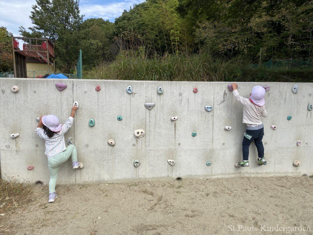 園庭ではちょっと難しい遊具にもチャレンジしていますよ。、