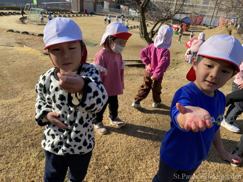 少し寒かった日にはもしかして、、と思い早く外に出てみると、あった!と氷