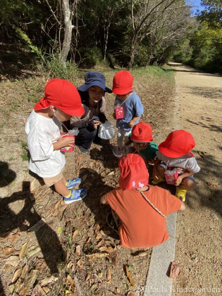 赤組だより クラスだより 2025.10.31 日中はポカポカと過ごしやすくなりましたね🌟 10月は子どもたちがとっても楽しみにしていた遠足がありました。鹿嶋神社、市ノ池公園までたくさん歩きましたよ👣 どんぐり拾いも楽しみました🌲 準備もありがとうございました! お弁当もおいしい〜♡と食べていました😋 お部屋では遠足ごっこを楽しむ姿や 園庭でバッタ探しも楽しんだあとはお部屋で観察しています👀💖 11月は参観月間です。 何か気になること、相談等あればこの機会にお話できたらと思います😌