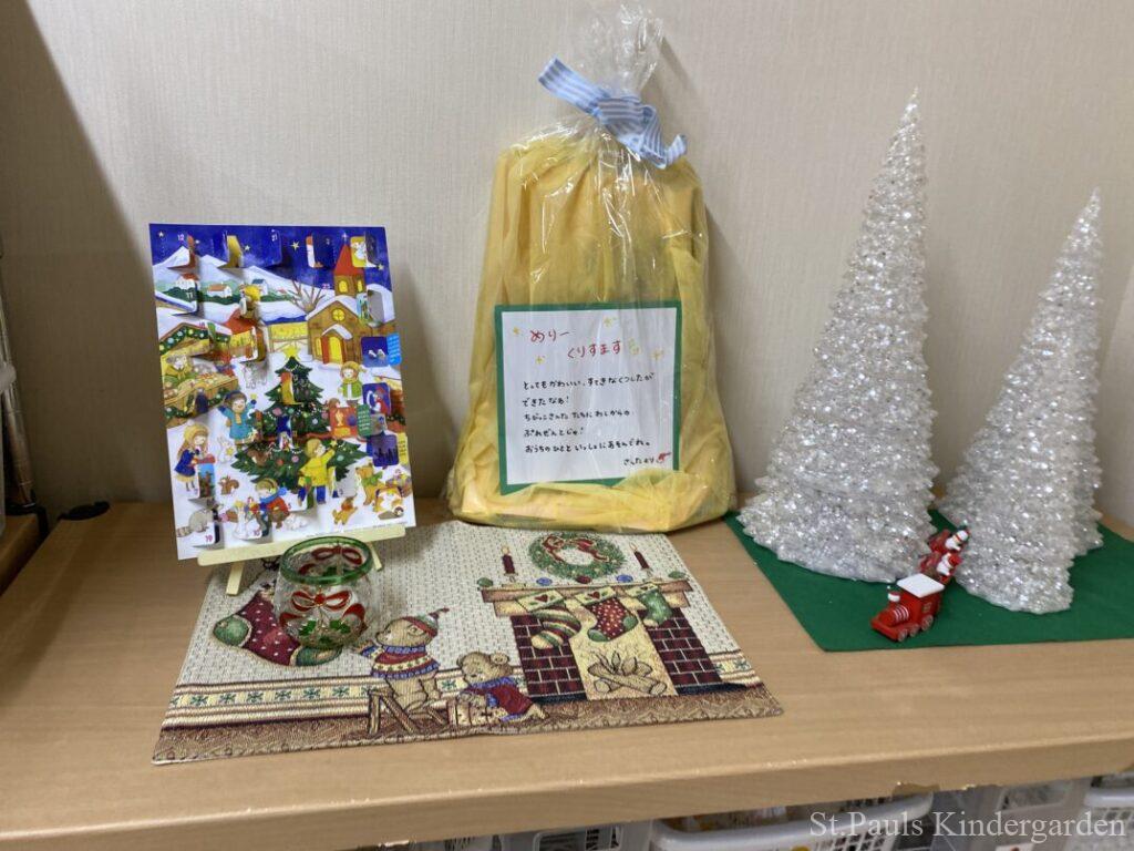 完成したくつ下をお部屋に下げているとクリスマスにサンタさんからプレゼントが…!