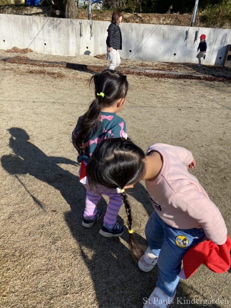 外ではしっぽとり、わらべうたあそび「むっくりくまさん」で体をたくさん動かして楽しんでいます🌟