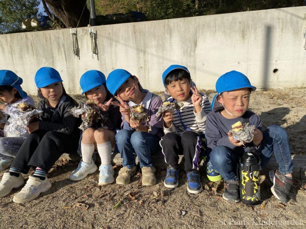 収穫したさつまいもは、子どもたちが洗って、濡らした新聞紙とアルミホイルで包み、焼き芋にして食べました❗️
