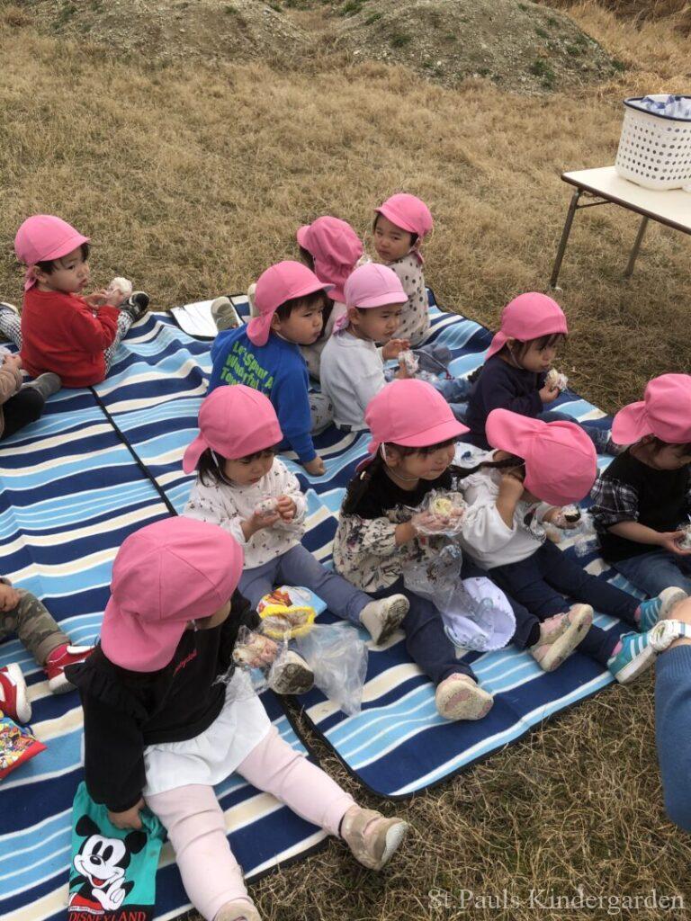 待ちに待ったおにぎりタイムが来ると、大喜びでシートの上に座る子どもたちでした♪