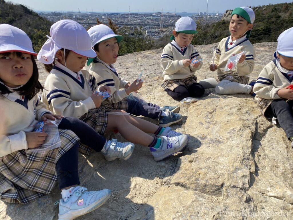 お山の上でおやつをたべたり、