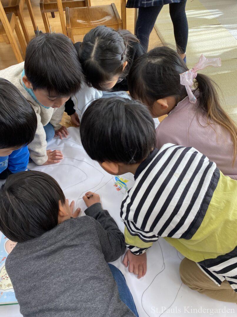 お話の中に出てくる小道具を作ったり、セリフを言ったり、、またまた、楽しい遊びが広がりそうです❗️